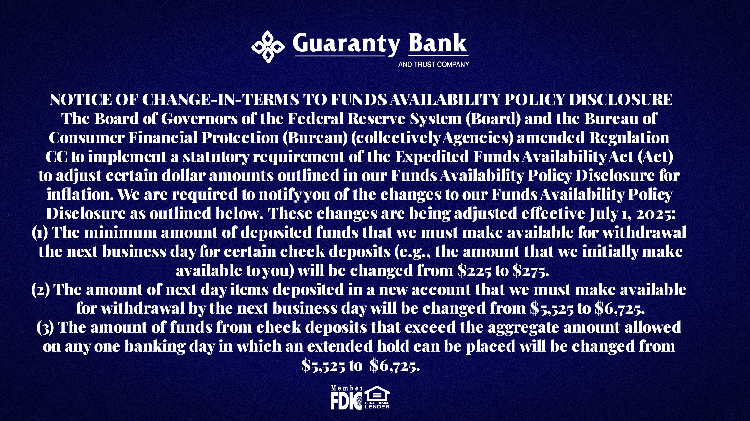 To ensure you never miss a call about activity on your debit card, add the Guaranty Bank Fraud Center to your contacts.